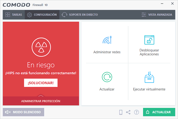 - Incluye diversos modos tales como Protección normal, Permitir salientes, Bloquear todos, Permitir todo y Modo de aprendizaje
