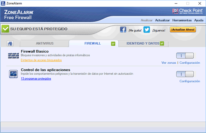 Zone Alarm es un firewall ligero que nos permite proteger las conexiones tanto de red LAN como de Wi-Fi en tiempo real ofreciéndonos múltiples funcionalidades y utilidades.