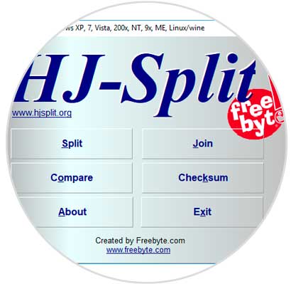 HJ Split es una herramienta Freeware que puede ser instalada en todas las ediciones de Windows tanto de 32 como de 64 bits. HJ Split no requiere instalación y nos ofrece las siguientes características:
