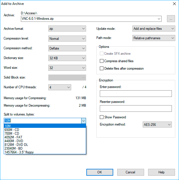 Para esto simplemente daremos clic derecho sobre el archivo e iremos a la ruta 7-Zip / Add to archive y en la ventana desplegada definir el tamaño deseado en el campo Split to volumes, bytes: