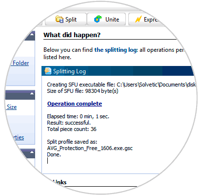 Si queremos dividir el archivo pulsaremos en el botón Split y este será el resultado: