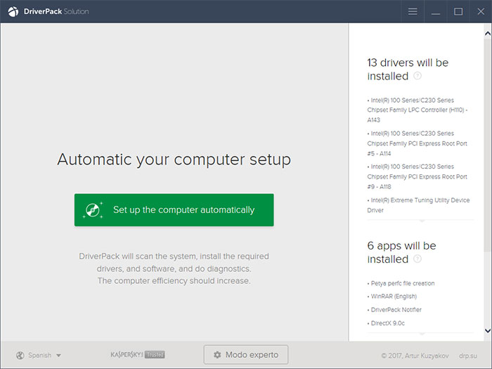 DriverPack Solution esta autenticado por Kaspersky lo cual nos garantiza la seguridad de uso.