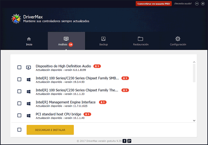 - De forma automática detecta y descarga los controladores que requieren actualización