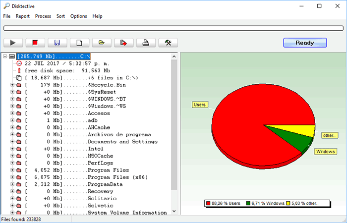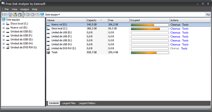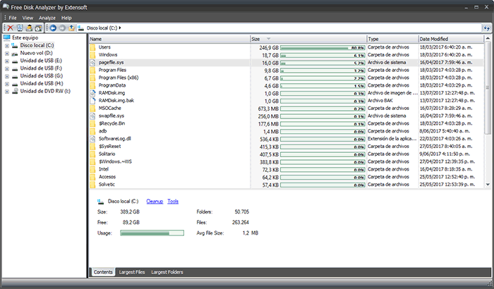 Esta es una herramienta simple que nos ofrece la opción de realizar un escaneo minucioso a la unidad seleccionada con el fin de visualizar la forma como se está usando el sistema de archivos.