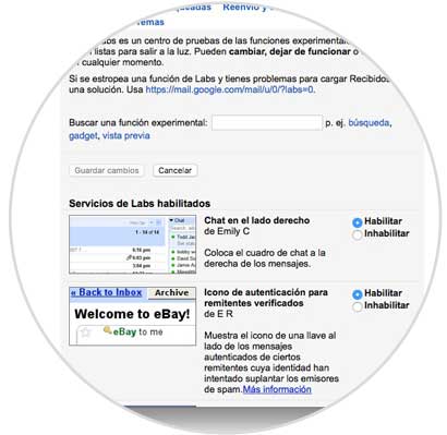 Tenemos que fijarnos en una de las primeras opciones dentro de “laboratorios disponibles” y habilitar la pestaña de “Icono de autenticación para remitentes verificados”. Una vez seleccionado esto, tenemos que guardar los cambios.