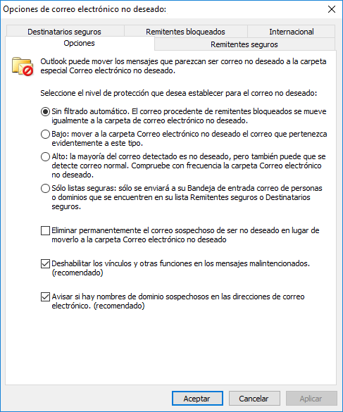 De esta forma evitaremos que este tipo de mensajes lleguen a nuestra cuenta de Outlook y podremos protegeremos nuestros correos electrónicos de phishing.