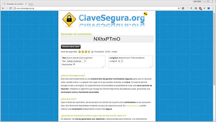Adicional en línea podemos encontrar diversos generadores de contraseñas seguras usando múltiples parámetros: