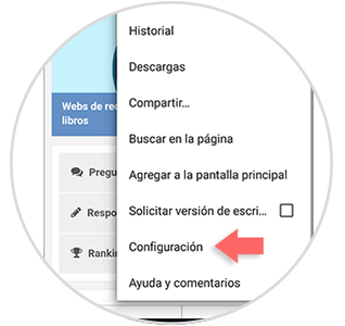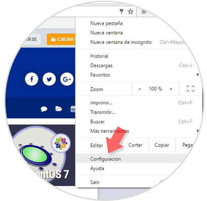Para realizar este proceso en Google Chrome vamos a la opción Personaliza y controla Google Chrome (icono de tres puntos verticales en la esquina superior derecha) y allí seleccionamos la opción Configuración: