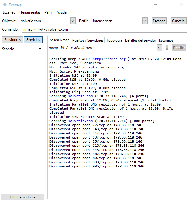 Para ejecutar la herramienta debemos indicar una dirección de destino para el respectivo análisis y este será el resultado: