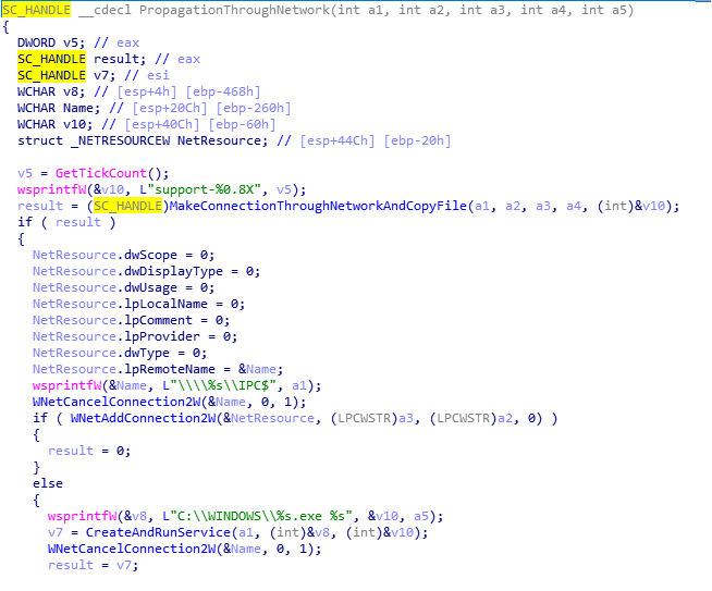 En el siguiente grafico podemos ver las funciones de propagación de red de IcedID, desde un IDA-Pro: