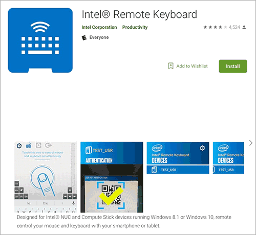 Esta App fue lanzada en 2015 por Intel para Android, y había sido diseñada para que permitir que los usuarios pudieran controlar de forma inalámbrica los ordenadores de una sola placa Intel NUC e Intel Compute Stick.