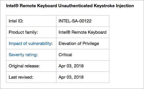 Intel Remote Keyboard permite a un atacante de la red inyectar pulsaciones de teclas como un usuario local.