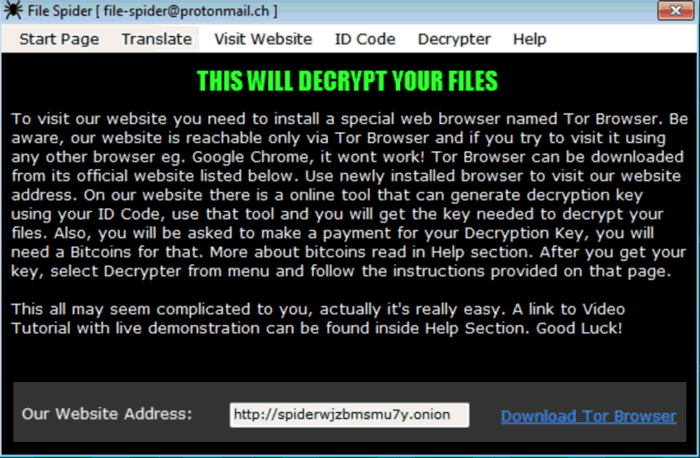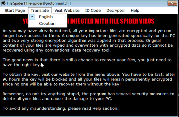 Una vez que el ordenador ha sido infectado por Spider virus, aparecerá una ventana en la pantalla del PC para indicar al usuario que ha sido infectado y que todos sus archivos se encuentran cifrados.