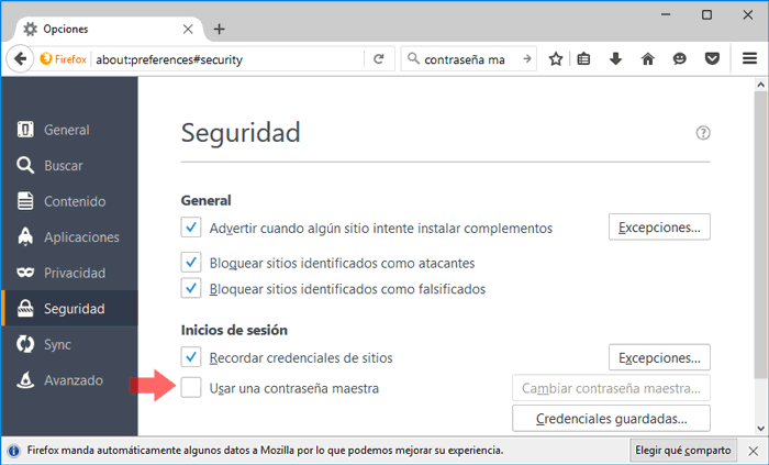 Cuando navegamos por internet, una de las cosas que más nos suelen preocupar es la seguridad y privacidad de nuestros datos. En muchas de las páginas a las que accedemos, necesitamos un usuario y contraseña. Es por ello que que entre otras, una de las opciones de seguridad que nos ofrece el navegador Firefox, es la posibilidad de la utilización de una contraseña maestra la cual nos permite cifrar todas las demás claves guardadas en el navegador o cliente de correo electrónico.