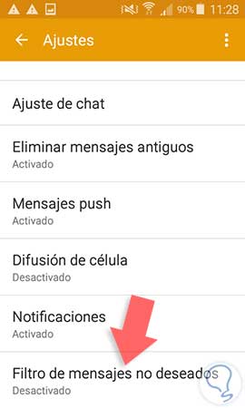 Al igual que recibimos llamadas molestas, existen SMS que no queremos que entren en nuestro teléfono por lo que vamos a ver cómo bloquear también los mensajes de ciertos números. Dirígete a la aplicación de mensajes y entra en sus Ajustes. Una vez aquí busca Filtro de mensajes no deseados o Gestor de spam.