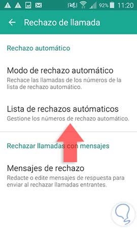 Ahora entra en rechazo de llamada y después en lista de rechazos automáticos.
