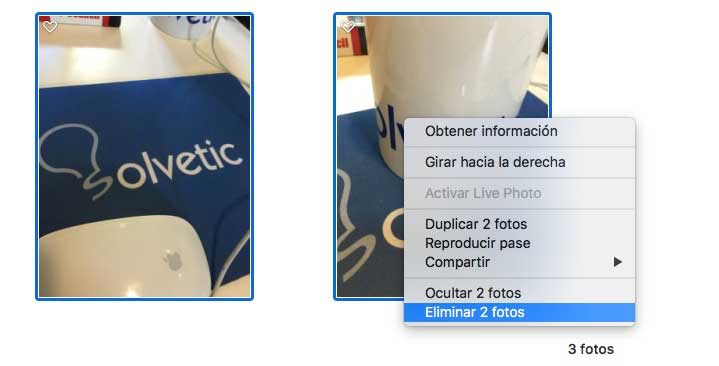 Una vez realizado esto, las fotos quedarán borradas en nuestro teléfono pero permanecerán en la aplicación. Si también queremos borrarlas de aquí, podemos hacerlo haciendo clic en el botón derecho del ratón y seleccionando “Eliminar”
