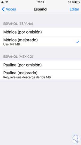 Ahora pinchamos en “Voces”. Aparecen diferentes idiomas, pinchamos en el idioma que queremos escuchar los textos.