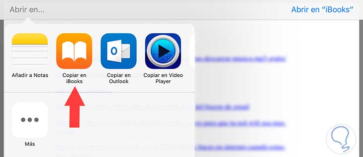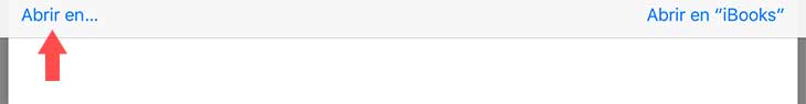 Lo primero que tenemos que hacer para poder abrir un archivo ePub o PDF en nuestro iPad, es acceder al documento el cual queremos tener en nuestro iPad o iPhone y enviárnoslo por correo. Una vez enviado, tenemos que abrir el correo en nuestro iPad y cuando lo hayamos descargado, damos un toque en la pantalla para que aparezca en el menú izquierdo superior la opción de “Abrir en”.