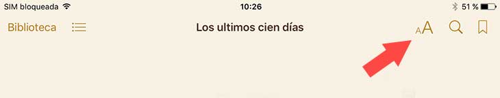 Para que podamos leer agusto y de la mejor manera todos nuestros archivos en el iPad, por defecto dentro de la aplicación tenemos una serie de ajustes, los cuales podemos ajustar a nuestra medida. Para ello tenemos que abrir el archivo el cual queremos configurar y seleccionar en la esquina superior el símbolo de las dos Aa.