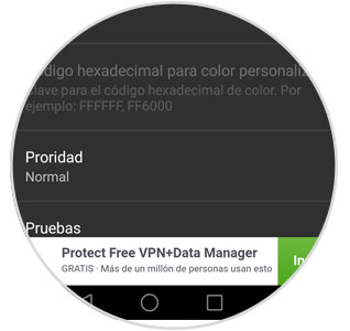 - Pulsar en el botón Pruebas para verificar como se verá el color de la notificación.