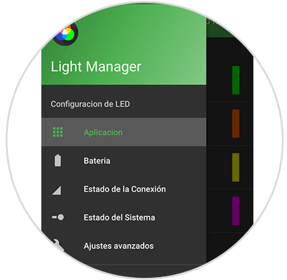 Con Light Manager podemos seleccionar entre 8 colores definidos como naranja, amarillo, verde, azul, púrpura, entre otros o establecer un color personalizado. Al acceder a Ligth Manager este será el entorno ofrecido por esta aplicación: