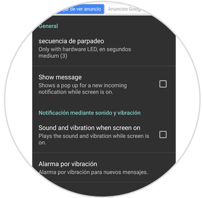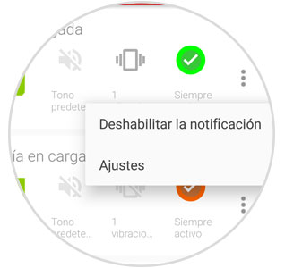 Allí podemos definir los diversos sonidos o colores para la notificación y si pulsamos sobre el icono de tres puntos verticales podremos deshabilitar esta notificación o proceder a su edición. Al acceder a los ajustes veremos lo siguiente: