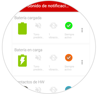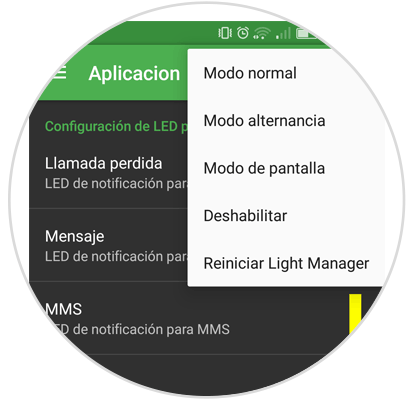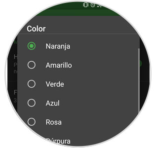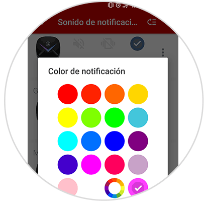 Si deseamos cambiar el color LED de una notificación pulsaremos sobre el icono de verificación y serán desplegadas las diversas opciones: