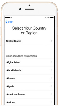 Una vez que lo hayas deslizado nos toca seleccionar la región o país donde residimos como se presenta en la imagen a continuación. Toma en consideración que la mayoría de aplicaciones se encuentran en el store o “tienda” que pertenece a Estados Unidos sin embargo para efectos de este tutorial analizaremos exclusivamente la región donde te encuentres en el caso que sea diferente a USA.