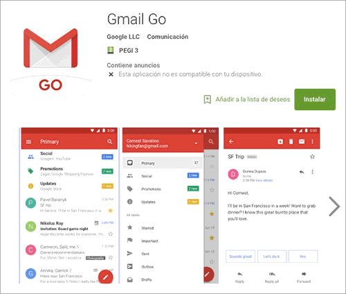 En esta ocasión, es Gmail quien acaba de lanzar una versión ligera de la App. Por lo que podemos apreciar en la descripción del Play Store, las diferencias con la versión completa parece inexistentes, pero dado que se trata de una App optimizada para móviles de bajo rendimiento, lo más probable es que carezca de algunas funciones.
