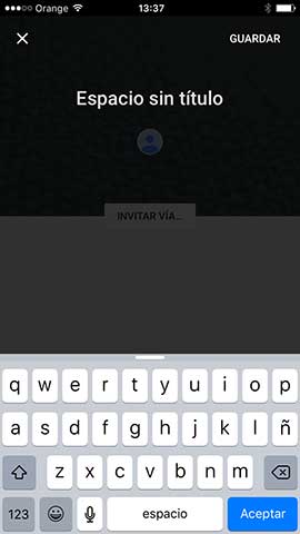 Si queremos crear un espacio, basta con tocar el icono de “Crear un espacio”. Tendremos que seleccionar un título y a continuación guardar. Hecho esto, ya tendremos nuestro espacio listo para interactuar en él.