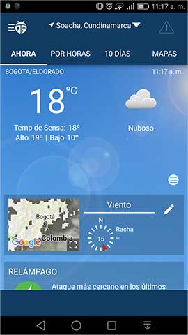 Esta aplicación gratuita nos permite conocer en tiempo real el estado del tiempo tanto de forma local como de otras ciudades alrededor del mundo. Su desarrollo permite tener a mano practicas utilidades como radar interactivo, mapas del satélite y alertas de tiempo las cuales permitirán que estemos al tanto de todo lo que sucede con el clima.