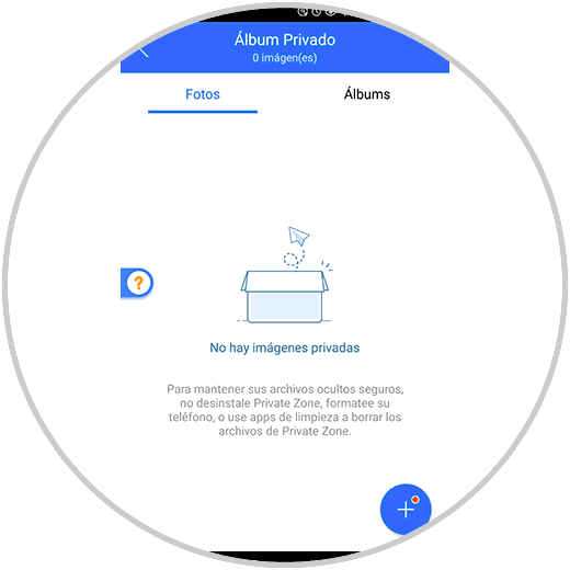 Al momento de acceder debemos configurar la contraseña. Una vez definida estaremos en la aplicación donde veremos diversas herramientas a usar. En este caso pulsamos en la opción Álbum privado y veremos lo siguiente: