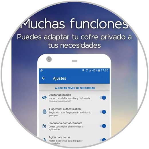 Esta aplicación tiene un enfoque más de edición de fotos y diseños, peor dentro de sus características nos da la opción de ocultar nuestras imágenes.
