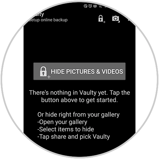 Con esto definido, veremos lo siguiente. Allí pulsamos en el botón Hide Pictures & Videos para acceder a las imágenes que deseamos ocultar. Una vez seleccionadas, pulsamos en el icono de candado y así protegeremos estas imágenes.