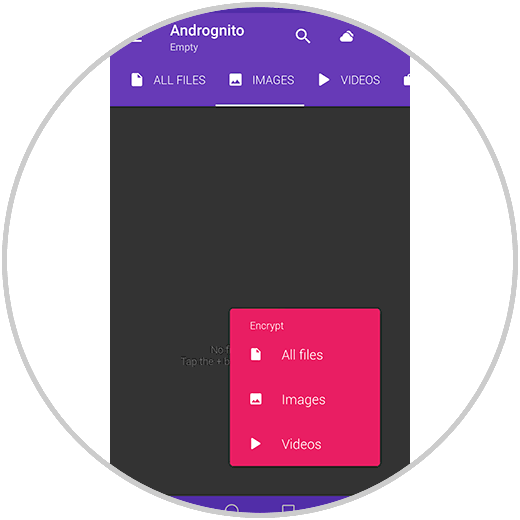 Pulsamos en el signo + ubicado en la parte inferior y seleccionamos el tipo de acción a realizar: En este caso hemos seleccionado Importar fotos y una vez estas sean seleccionadas podremos ubicarlas en la carpeta deseada y allí estarán protegidas:
