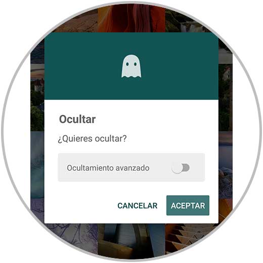 Allí seleccionamos el tipo de elemento a cargar y procedemos a seleccionar las imágenes o videos a ocultar. Una vez seleccionados pulsamos en el icono de verificación y será desplegado el siguiente mensaje: