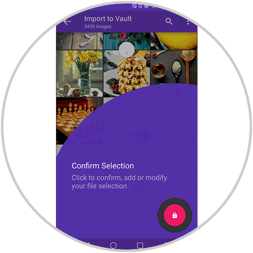 Pulsamos en el icono de fotos y ahora basta con seleccionar las imágenes a ocultar en Android. Allí pulsamos en Importar y de este modo esa imagen será oculta y protegida.