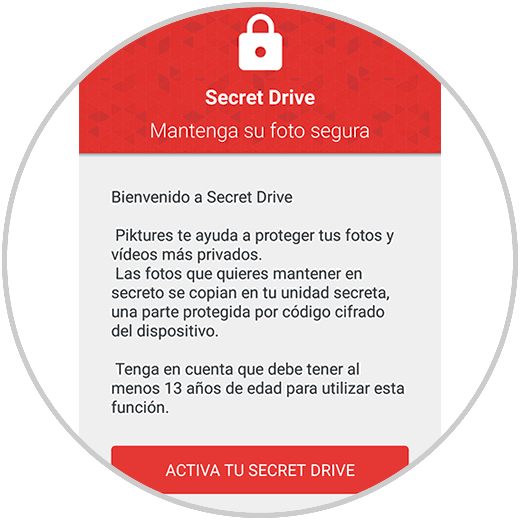 Alli se desplegará lo siguiente. Pulsamos en el botón Activa tu secret drive y es hora de definir el Pin: