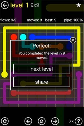 El objetivo básico es conectar dos puntos del mismo color sin cruzar los cables entre sí. La dificultad y número de cuadrículas van aumentando en función de los niveles que vayamos superando.