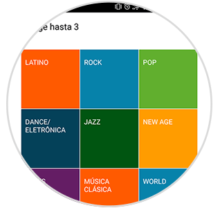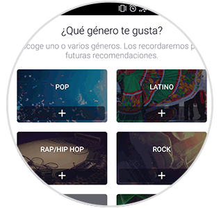 Al acceder a la aplicación en primer lugar iniciaremos sesión y esta será la pantalla principal de Deezer donde podremos seleccionar alguno de los géneros disponibles para recibir sugerencias de artistas. Podemos realizar la búsqueda del artista directamente: