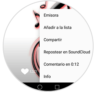 Al reproducir una canción tendremos la posibilidad de realizar determinadas acciones sobre ella: