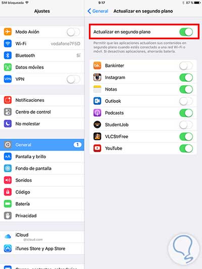 Para desactivar las actualizaciones en segundo plano debemos seguir la siguiente ruta “General” – “Configuración” –“Actualizaciones en segundo plano”. Y una vez aquí debemos desmarcar la opción de “Actualizar en segundo plano”.