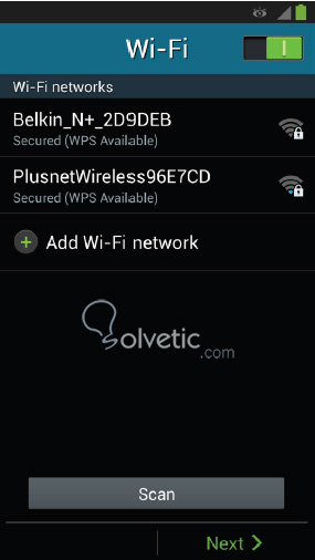 - Alguno de los siguientes pasos en la configuración del teléfono necesitan estar conectados a una red Wi-Fi. Toca la red a la cual deseas conectarte y sí está protegida por contraseña ingresa la misma. Es importante señalar que te puedes saltar este paso pero se recomienda hacerlo en un principio. Tocamos Next.
