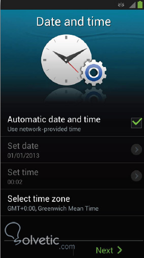 - Luego configuramos la hora y fecha, es importante señalar que la manera más sencilla de hacer esto es tocando donde nos indica Automatic date and time, que nos dará la hora y fecha de acuerdo a nuestra red. Sin embargo podemos colocar la hora y fecha manualmente.