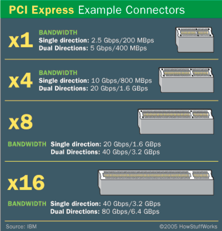En el siguiente gráfico podemos ver las diferencias de ancho de banda entre las diversas versiones de conexiones PCI Express: