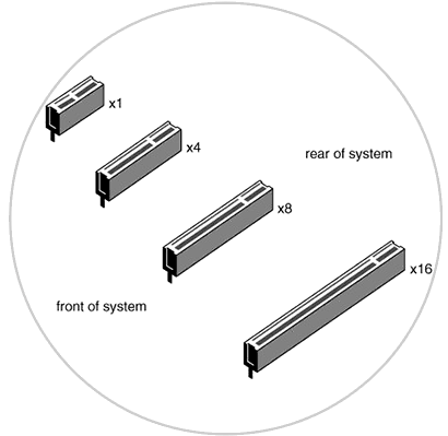 Cada uno de estos tipos de PCI Express varia su tamaño y es por esto que cada tipo esta precedido por una letra x donde la x significa el número de líneas o carriles que serán usados para transportar la información.