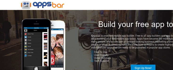 Empezamos con appsbar, es un generador de aplicaciones, que nos permite crear aplicaciones nativas para Android y en HTML5 para iOS, Windows Phone o Blackberry, como vemos nos da la posibilidad de llegar a todos los sectores.