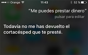 Y ya si entramos en el tema económico salimos perdiendo seguro. Quizás tu nunca le hayas prestado nada, pero Siri va a atacarte diciendo que aún no le has devuelto algo. Fíjate lo que dice que me dice a mí, y no tengo ni césped.