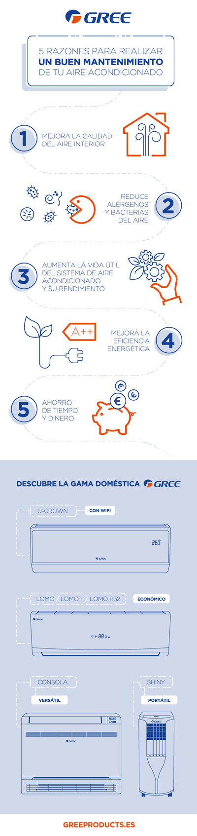 Entre las características de la gama doméstica Lomo +, destacábamos algunas de las funciones inventadas para respirar en casa un aire más puro libre de bacterias, hongos, virus y exceso de humedad. Tan importante es hacerte con un buen equipo de climatización en tu casa como el mantenimiento de los aparatos para asegurar la calidad del aire. Con este propósito, hemos elaborado una infografía con los principales motivos que deben impulsar nuestra motivación por hacer un uso y mantenimiento responsable y adecuado de nuestro aire acondicionado.